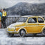 3D schilderij gele vintage auto 80x60 cm