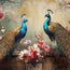 Glasschilderij twee pauwen omringd door bloemen met 3D reliëf 120x80 cm