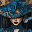 Glasschilderij vrouw met blauwe hoed & vlinders uniek 3D reliëf 110x160 cm