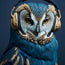 Glasschilderij Blauwe uil met gouden koptelefoon 80x120 cm (Magazijn sale)
