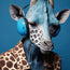 Glasschilderij Giraffe blauwe koptelefoon 80x120 cm