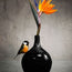 Glasschilderij Koolmeesje vogel op zwarte vaas 80x120 cm
