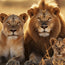 Glasschilderij Leeuwen familie met 1 welp - 160x110 cm