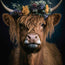 Glasschilderij Schotse hooglander bloemenkrans 80x120 cm