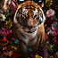 Afbeelding | Tijger met bloemen, papegaai, bloemen en vlinders |