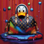 Glasschilderij Stripfiguur eend met dure merk tas 60x80 cm