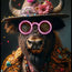 Glasschilderij met ledverlichting - Schotse hooglander roze zonnebril 80x120 cm
