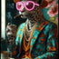 Glasschilderij met ledverlichting - Luipaard roze zonnebril 80x120 cm