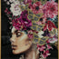 Glasschilderij Vrouw met bloemen met kristallen en lijst 80x120 cm (NIEUW)