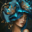 Glasschilderij vrouw blauwe bloemen 80x120 cm