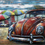 Belangrijke Kenmerken van het 3D Metalen Schilderij Rode Duitse Auto op het Strand: