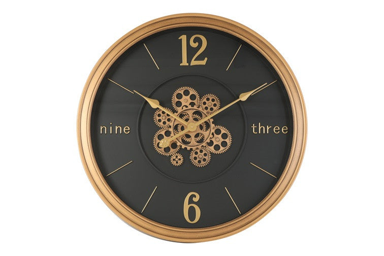 De tandwielen in de klok draaien rond. |