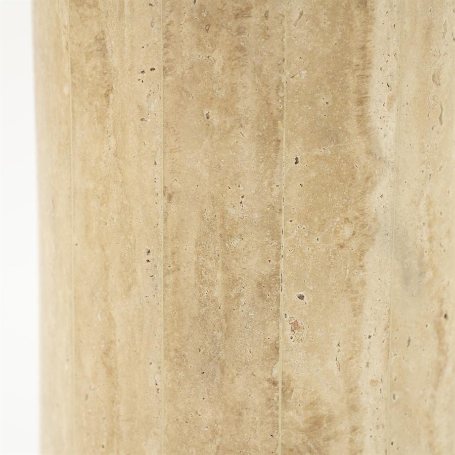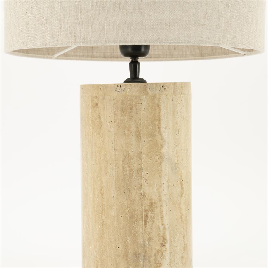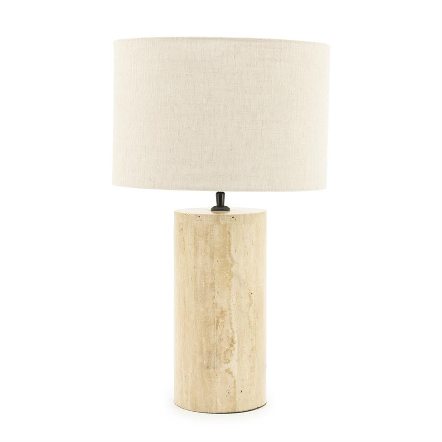 De Tafellamp Amara combineert een stevige, luxe travertin voet met een zachte linnen kap voor een elegante en verfijnde uitstraling. De warme verlichting zorgt voor een uitnodigende ambiance, ideaal voor ontspanning of werk. Met zijn hoogte van 60 cm past deze lamp perfect op een bijzettafel, dressoir of bureau.