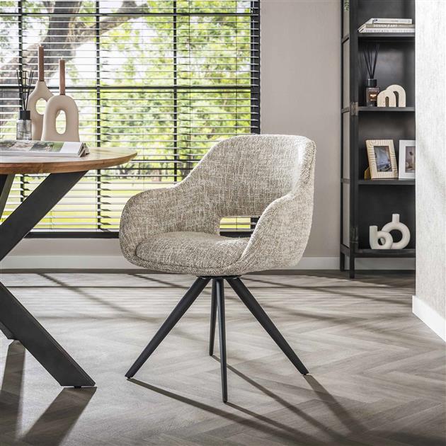 Of u nu een intieme maaltijd deelt of uw gasten verwelkomt, met deze comfortabele eetkamerstoel tilt u uw eetervaring naar een hoger niveau. De draaibare functie maakt het gemakkelijk om met uw gasten te communiceren zonder dat u uw stoel hoeft te verplaatsen.