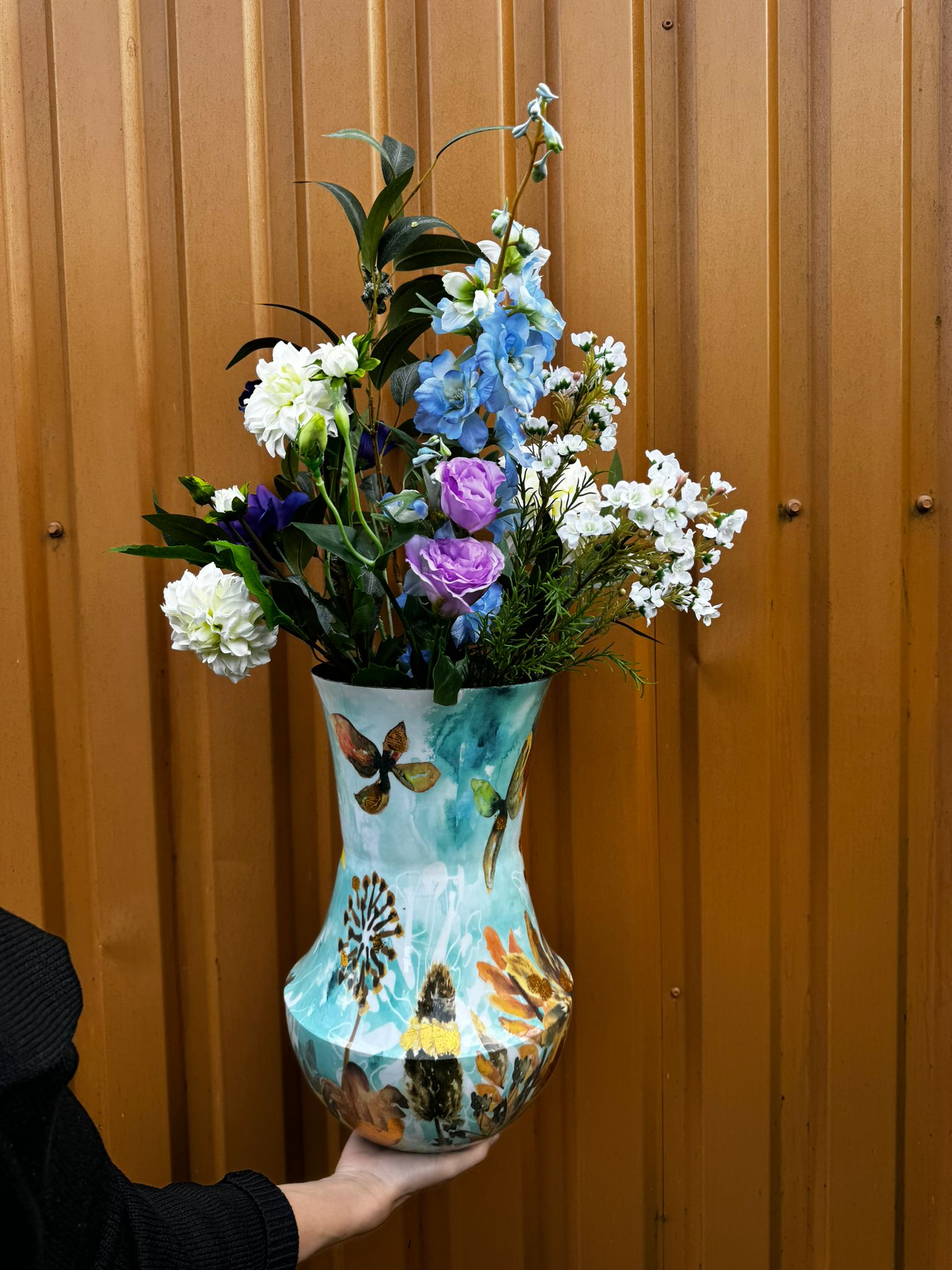 Onze prijzen zijn exclusief vaas, zodat u de vrijheid heeft om een vaas te kiezen die perfect bij uw smaak en interieur past. Wij bieden echter ook een mooie selectie vazen aan die uw boeket compleet maken. Zo kunt u uw boeket kunstbloemen in één keer compleet aanschaffen.