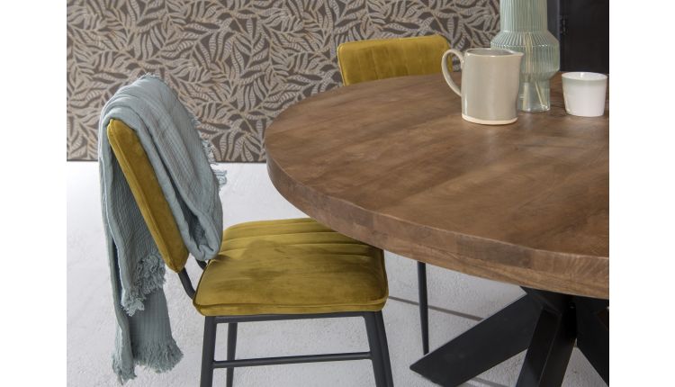 Deze stoere robuuste eettafel van mango hout past in ieder interieur. De metalen spider poten maken de industriële look helemaal compleet. Het blad is behandeld met een water & vlek afstotende laag. U hoeft de tafel dus niet te behandelen.