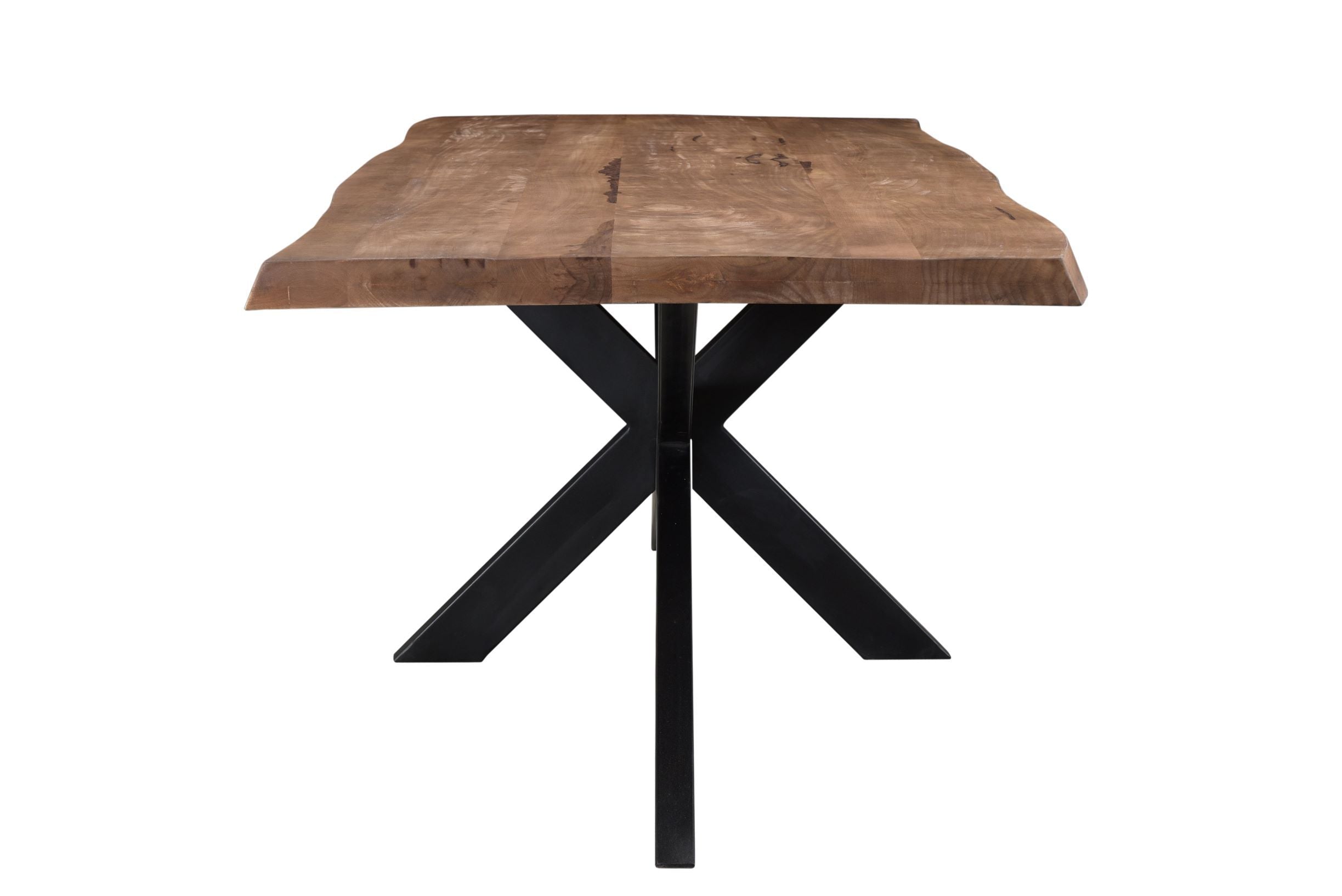 Deze stoere robuuste eettafel van mango hout past in ieder interieur. De metalen spider poten maken de industriële look helemaal compleet. Het blad is behandeld met een water & vlek afstotende laag. U hoeft de tafel dus niet te behandelen. Het blad is in de vorm van een boomstam. Deze unieke vorm zorgt voor een natuurlijke uitstraling.