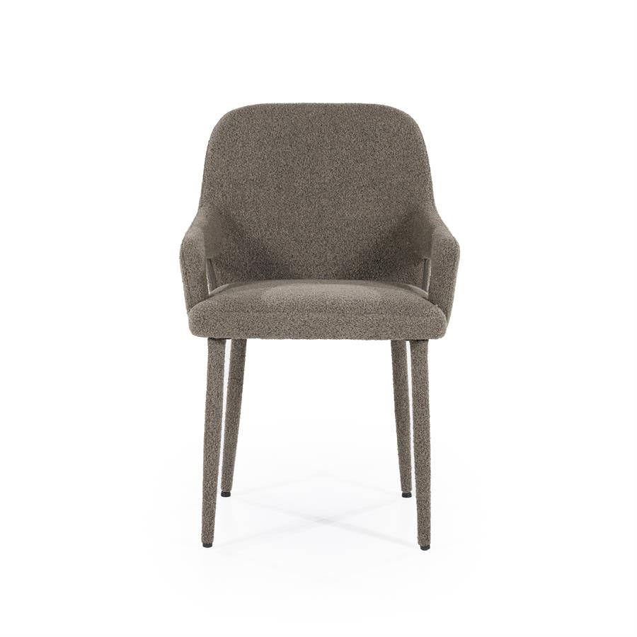 De stoel is vervaardigd uit duurzaam metaal en bekleed met Tibble-stof. Deze combinatie zorgt niet alleen voor een stevige constructie, maar ook voor een luxe uitstraling. De stof voelt zacht aan en is tegelijkertijd slijtvast, waardoor de stoel jarenlang meegaat. -