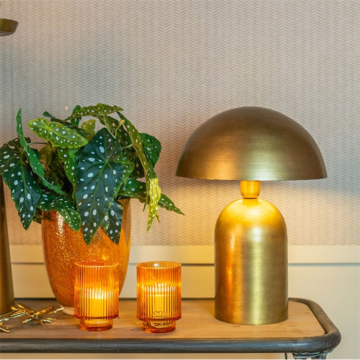 Breng direct sfeer in huis met deze prachtige tafellamp Toad in de kleur messing.