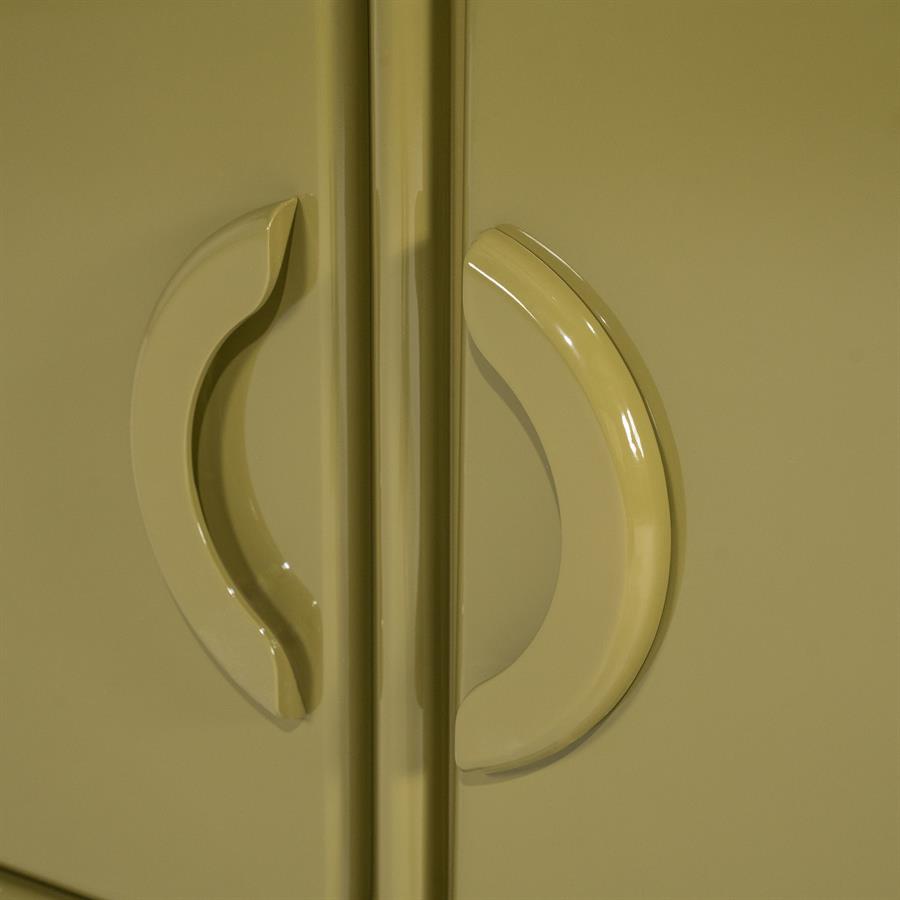 De kast is gemaakt van duurzaam MDF en afgewerkt in een luxe high gloss groene lak. Deze hoogglans afwerking geeft de kast een eigentijdse en chique uitstraling, terwijl de opvallende groene kleur zorgt voor een trendy en uniek accent in je interieur.