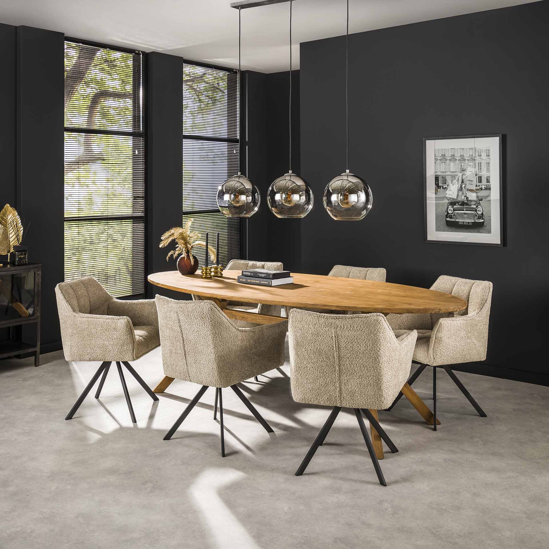 Deze trendy eetkamerstoel is een echte must have! De stoel is draaibaar en heeft een zeer fijne kuip. Praktisch en erg comfortabel. De stoel heeft een chique uitstraling en is uitgevoerd in meerdere stoffen en kleuren. De stoel wordt per 2 stuks verpakt.