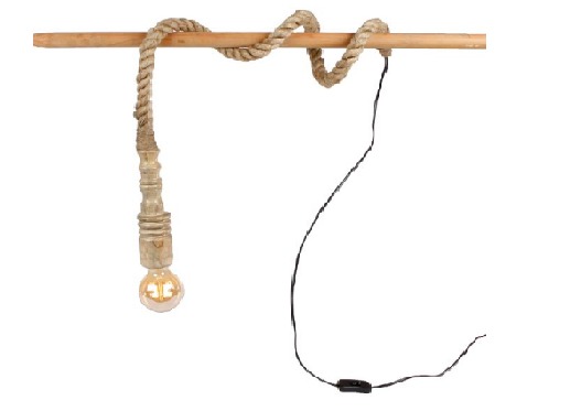 Dik jute touw met fitting, stekker en aan en uit schakelaar.