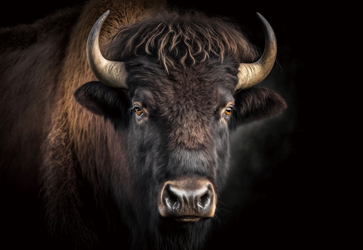 Op het glazen canvas komt een beeld tot leven van een Schotse hooglander, van dichtbij gefotografeerd. De zachte vacht, indrukwekkende horens en doordringende ogen worden scherp en gedetailleerd weergegeven, terwijl de zwarte achtergrond een dramatisch contrast creëert. De afbeelding is verbluffend scherp, waardoor elk detail van de hooglander met ongekende precisie wordt weergegeven.