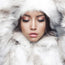 Glasschilderij Vrouw witte bont 120x80 cm