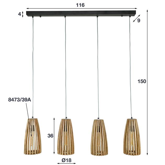 Deze trendy hanglamp 'launch' is uitgevoerd in mango hout. De houten spijlen geven een sfeervolle licht verdeling en maakt deze lamp een echte eye-catcher! De kappen zijn afzonderlijk tot 150 cm in hoogte te verstellen. Deze lamp heeft ook een bijpassende vloerlamp. Er wordt aanbevolen LED lichtbron (8473) te gebruiken.