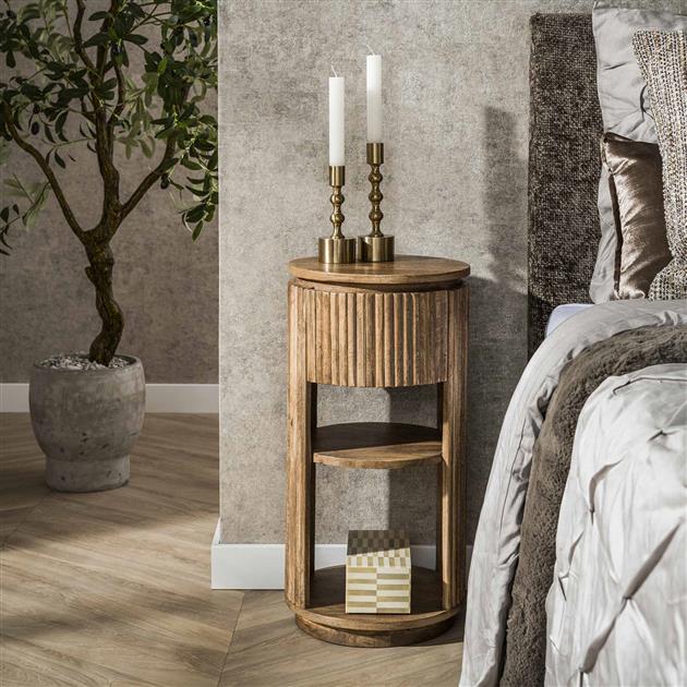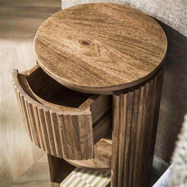 Nachtkastje 1L Wave Rond XS - Massief Mango Zandkleur
