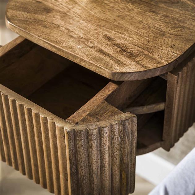 De unieke wave-vorm geeft dit nachtkastje een moderne en speelse uitstraling, waardoor het perfect past in zowel een Scandinavisch als een eigentijds interieur. De hoogwaardige afwerking benadrukt de natuurlijke schoonheid van het mango hout, wat zorgt voor een duurzame keuze die jarenlang meegaat.