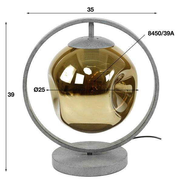 Deze prachtige tafellamp 'stellar' is een echte eye-catcher! De lamp is uitgevoerd in metaal met een glazen kap. De kap kan los gehaald worden, waardoor de lichtbron gemakkelijk geplaatst kan worden. Er wordt aanbevolen LED lichtbron (8450) te gebruiken. Deze tafellamp maakt deel uit van de 'stellar' serie.