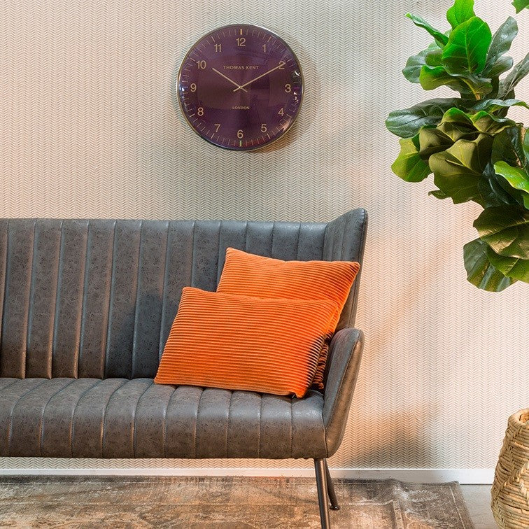 De klok Oyster S paars/zilver is een prachtige ronde klok. Een echte eyecatcher voor aan de muur! De klok heeft een doorsnede van Ø40CM. Deze moderne klok heeft een paarse wijzerplaat, zilveren cijfers met gekleurde details, zilveren wijzer en frame. Deze klok past perfect bij verschillende interieurstijlen.